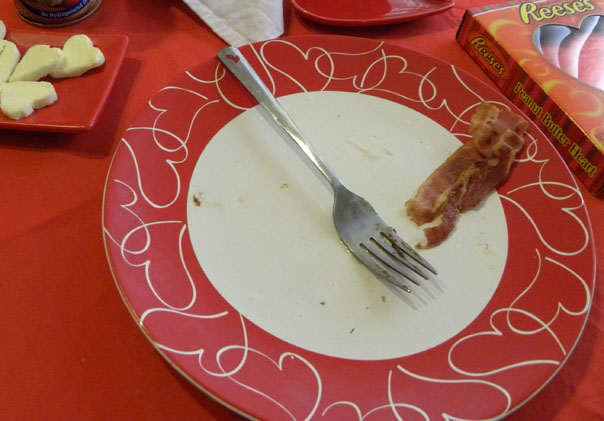 The aftermath.. it didn't take long to consume. Brad leaves for work early so he had to miss breakfast but, I left a cinnamon roll for him next to a pot of hot coffee.